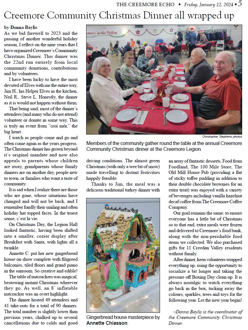 Creemore Community Christmas Dinner all wrapped up (The Creemore Echo, Jan. 12, 2024)